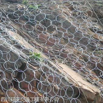 构造:由钢丝绳网或环形网(当需阻截小块落石时增加一层钢丝网),固定系统(锚杆,锚索,底座和支撑绳),减压环和钢制成柱。部分构成